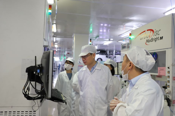 陳區(qū)長(zhǎng)先后參觀了公司展廳及生產(chǎn)車間,集團(tuán)藍(lán)綠事業(yè)部總經(jīng)理、江西乾照光電總經(jīng)理劉兆向陳區(qū)長(zhǎng)詳細(xì)介紹了產(chǎn)品的工藝流程。陳區(qū)長(zhǎng)對(duì)乾照光電的產(chǎn)品及項(xiàng)目進(jìn)行深入的了解,并就關(guān)心的問(wèn)題與陪同人員進(jìn)行深入的交流。