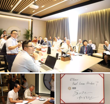 不謀全局者不足以謀一域。乾照光電積極構(gòu)筑制造業(yè)總部,大力布局化合物半導(dǎo)體領(lǐng)域前沿項目。在廈門、南昌、揚州布局藍(lán)綠光LED外延片和芯片、砷化鎵新型太陽能電池、3D感測激光VCSEL芯片、Mini LED和MicroLED芯片規(guī)?;慨a(chǎn)等前沿產(chǎn)業(yè)項目。中村教授對乾照光電未來的規(guī)劃表示贊賞,他說,乾照光電已經(jīng)擁有了全色系的LED產(chǎn)品,這是很大的優(yōu)勢,相信公司一定會有很好的前景,同時也勉勵乾照光電年青的科研團(tuán)隊要“Stay hungry”(保持對知識的渴望)。中村教授離開公司前,寫下了 “When Red Laser Diodes?”的寄語,激勵乾照光電要始終走在產(chǎn)業(yè)的最前沿。