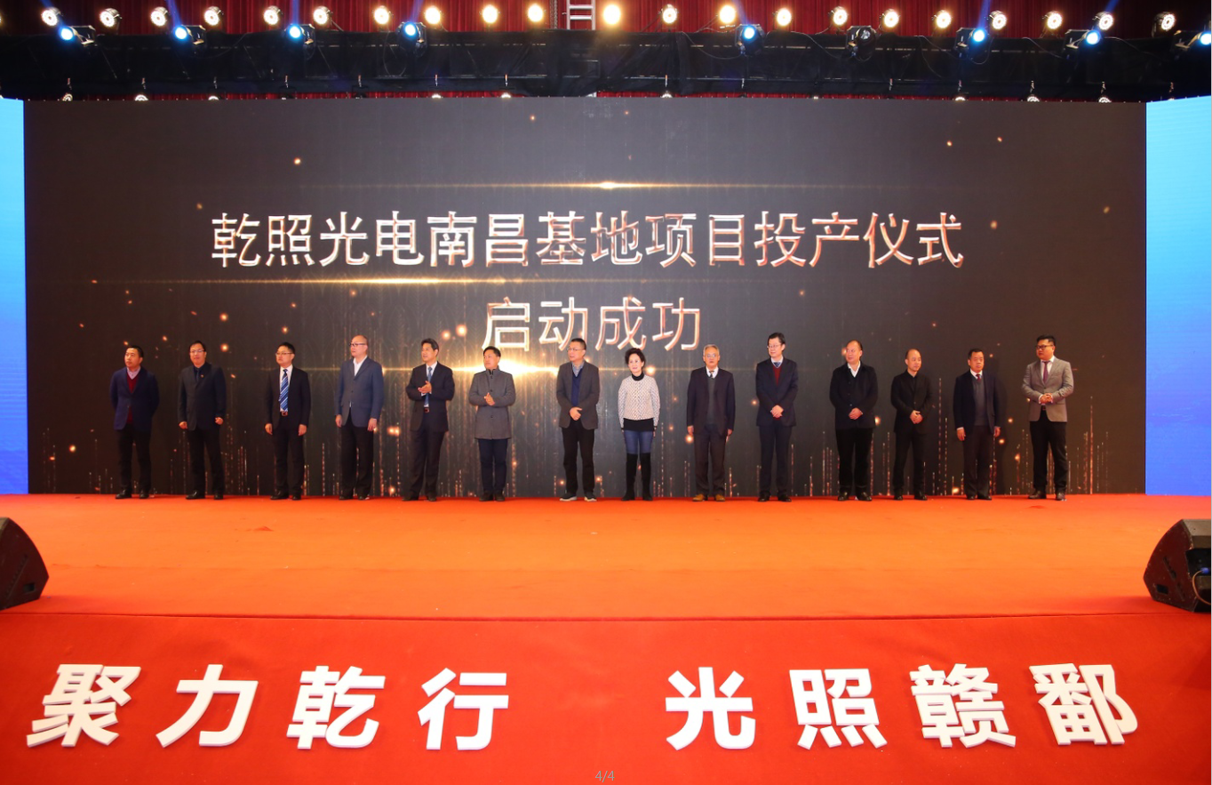 光電產(chǎn)業(yè)項(xiàng)目合作簽約儀式之后,江西省、南昌市、新建區(qū)黨政領(lǐng)導(dǎo)及參會的專家、企業(yè)代表與乾照光電董事長金章育、總裁蔡海防共同參加了乾照光電南昌基地項(xiàng)目投產(chǎn)儀式慶典。