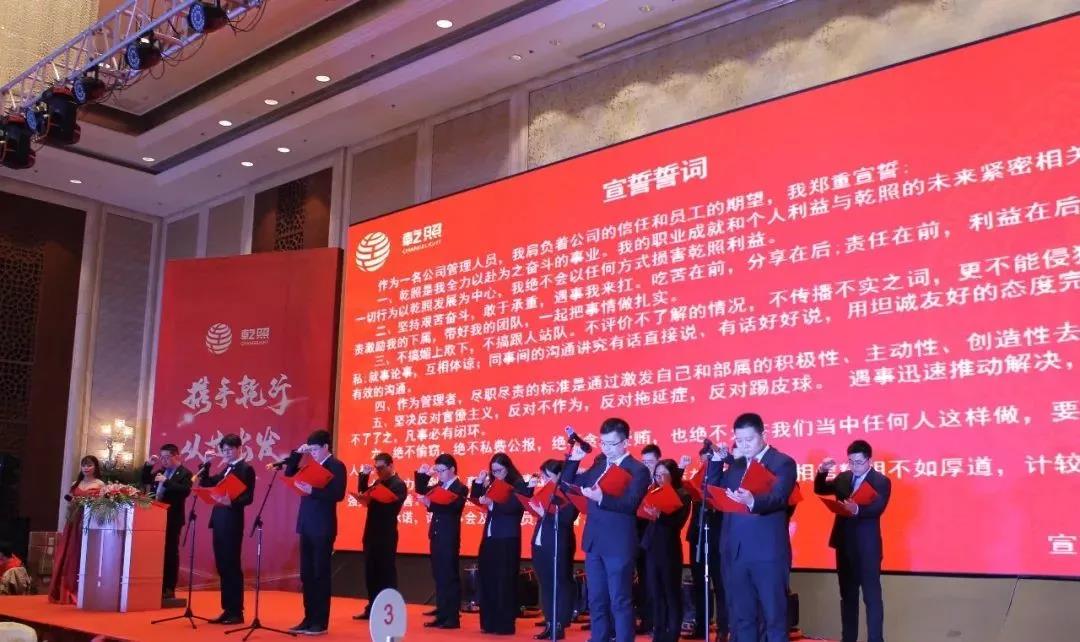 表彰后,舉行了管理層人員誓師大會(huì)。揚(yáng)州乾照光電總經(jīng)理帶領(lǐng)公司經(jīng)理層以上管理人員20余人,面對(duì)全體員工莊嚴(yán)宣誓,將不辜負(fù)公司的信任和員工的期望,把乾照作為全力以赴奮斗的事業(yè),一切行為以乾照發(fā)展為中心,艱苦奮斗,勇于擔(dān)當(dāng),做到待人真誠(chéng)、處事謙恭、簡(jiǎn)單正直、質(zhì)樸堅(jiān)韌,激發(fā)自己和部屬的積極性、主動(dòng)性,創(chuàng)造性地去獲取勝利。