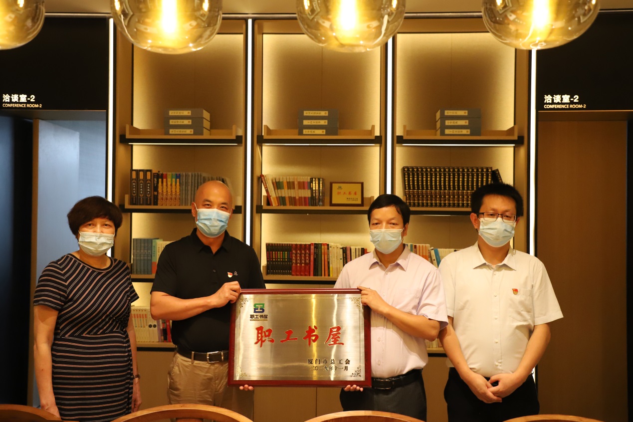 2020年5月26日,黨建掛鉤聯(lián)系單位廈門市總工會副主席劉義平一行蒞臨乾照光電調(diào)研指導,翔安區(qū)總工會常務副主席王黎明等領導陪同調(diào)研。調(diào)研組一行參觀了公司展廳、書吧以及黨建文化墻、黨群活動中心,詳細了解了公司生產(chǎn)、經(jīng)營以及黨建帶工建工作情況。期間,雙方還舉行了“職工書屋”授牌儀式。