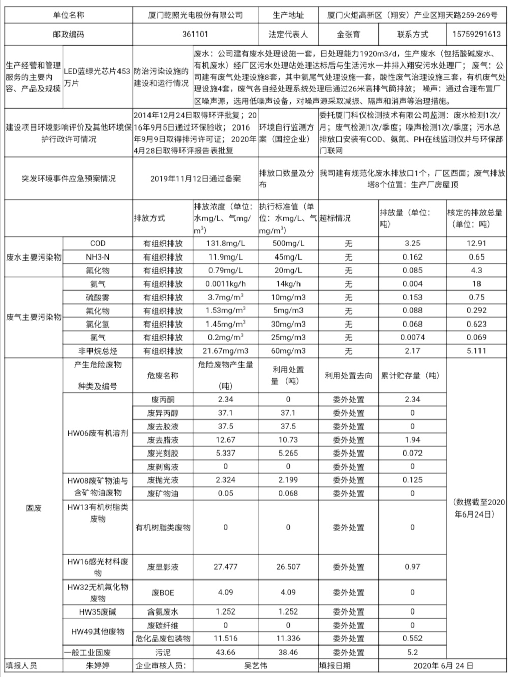 廈門乾照光電股份有限公司環(huán)境信息表