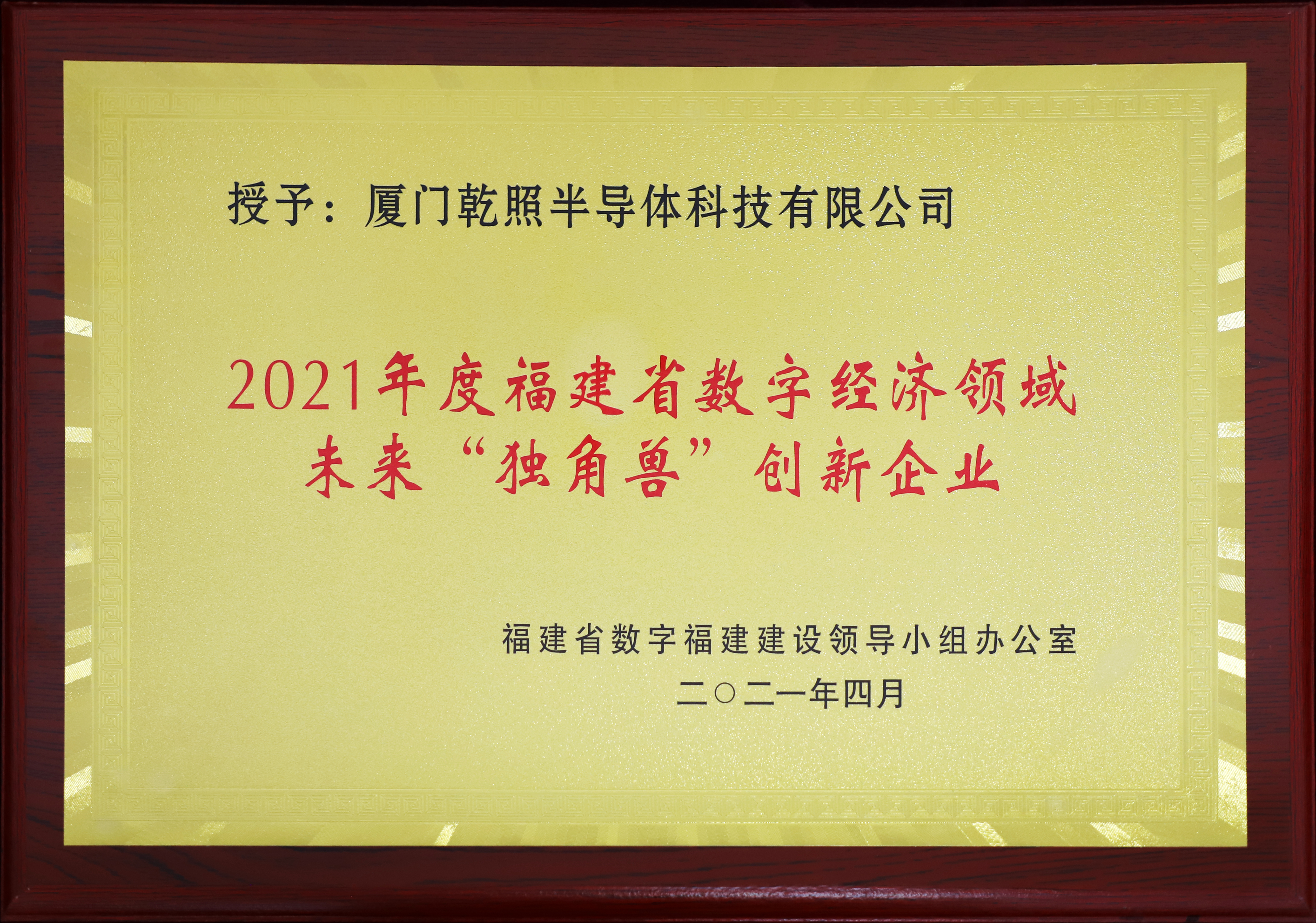 廈門乾照光電榮獲“2021年度福建省數(shù)字經(jīng)濟(jì)領(lǐng)域未來‘獨角獸’創(chuàng)新企業(yè)”稱號