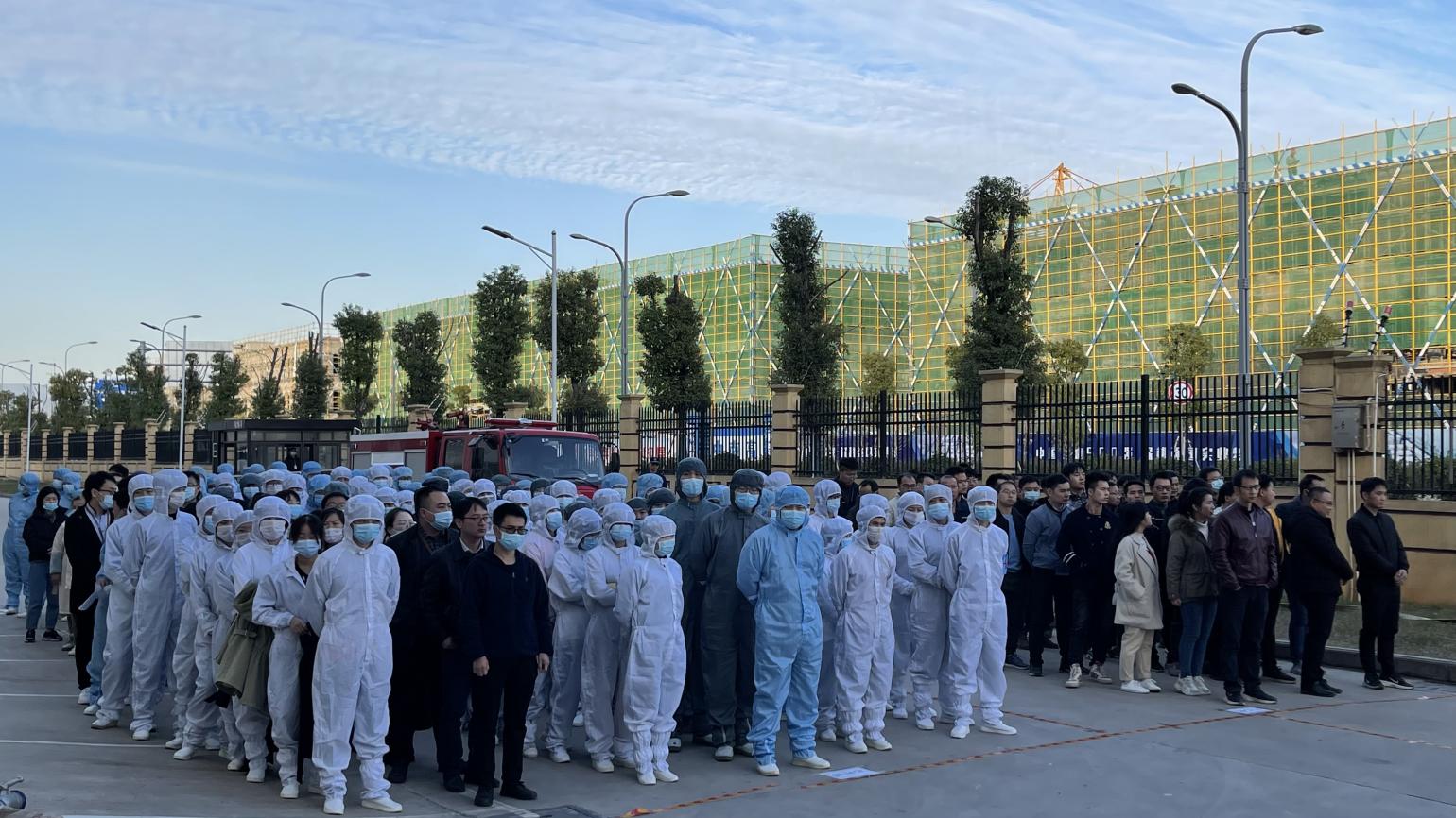 上午8:35演習(xí)開始,外延車間塔燈聲光報(bào)警。車間人員快速有序撤離至緊急疏散集合點(diǎn),應(yīng)急預(yù)案啟動(dòng),搶險(xiǎn)組進(jìn)入現(xiàn)場(chǎng)排查險(xiǎn)情。