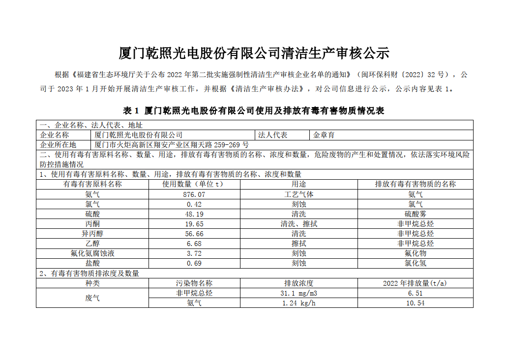 廈門乾照光電股份有限公司清潔生產(chǎn)審核公示