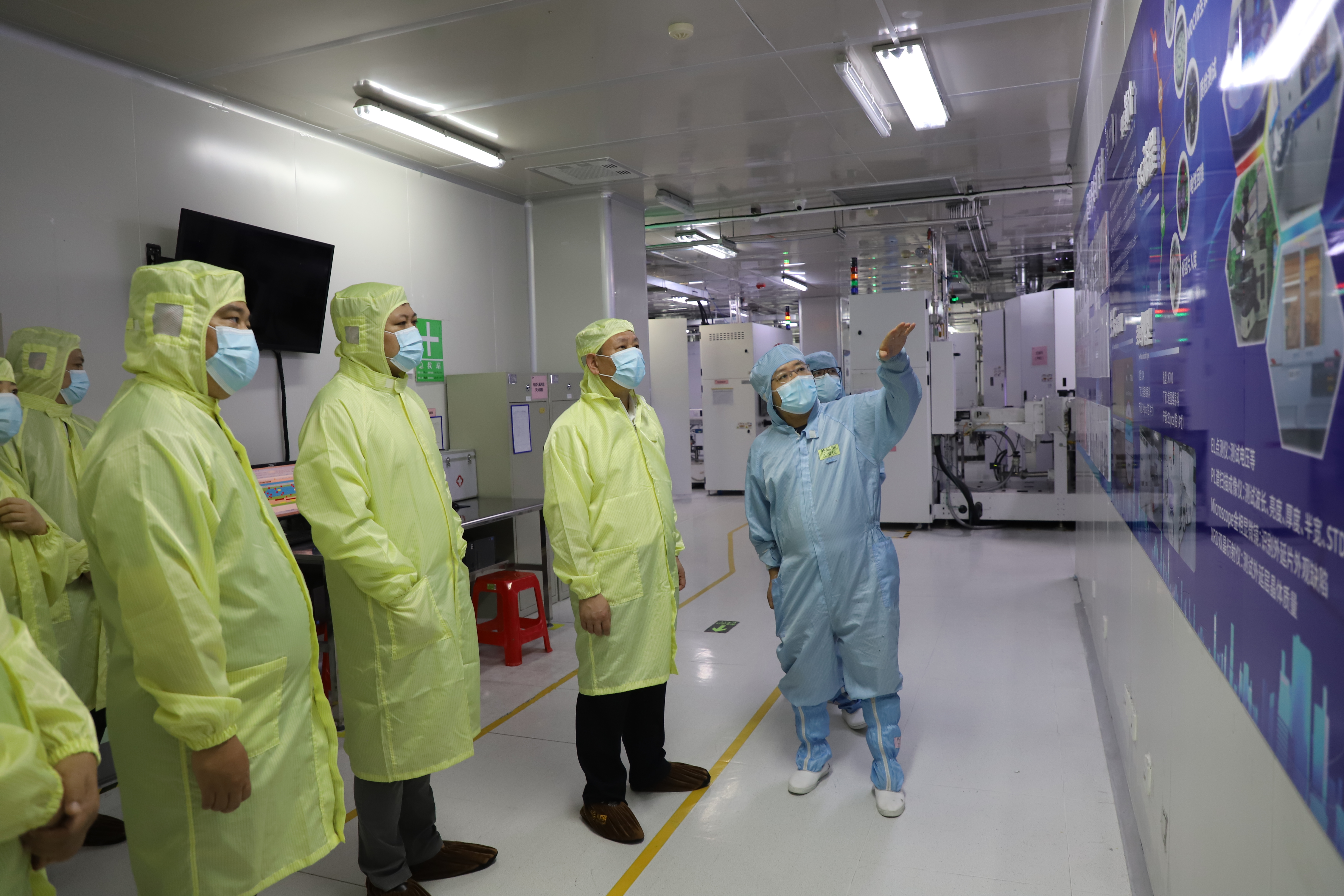 在公司展廳,瞿廳長一行聽取了關于乾照光電發(fā)展歷程、主營產(chǎn)品及未來發(fā)展的匯報,并認真了解了公司目前的運營情況。隨后,瞿廳長一行前往生產(chǎn)車間,查看了車間生產(chǎn)情況,并仔細觀摩了外延片和芯片的生產(chǎn)技術(shù)工藝。