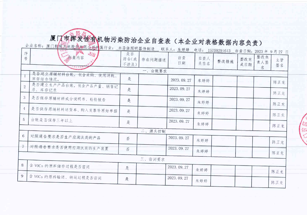 廈門市揮發(fā)性有機(jī)物污染防治企業(yè)自查表——廈門乾照光電股份有限公司