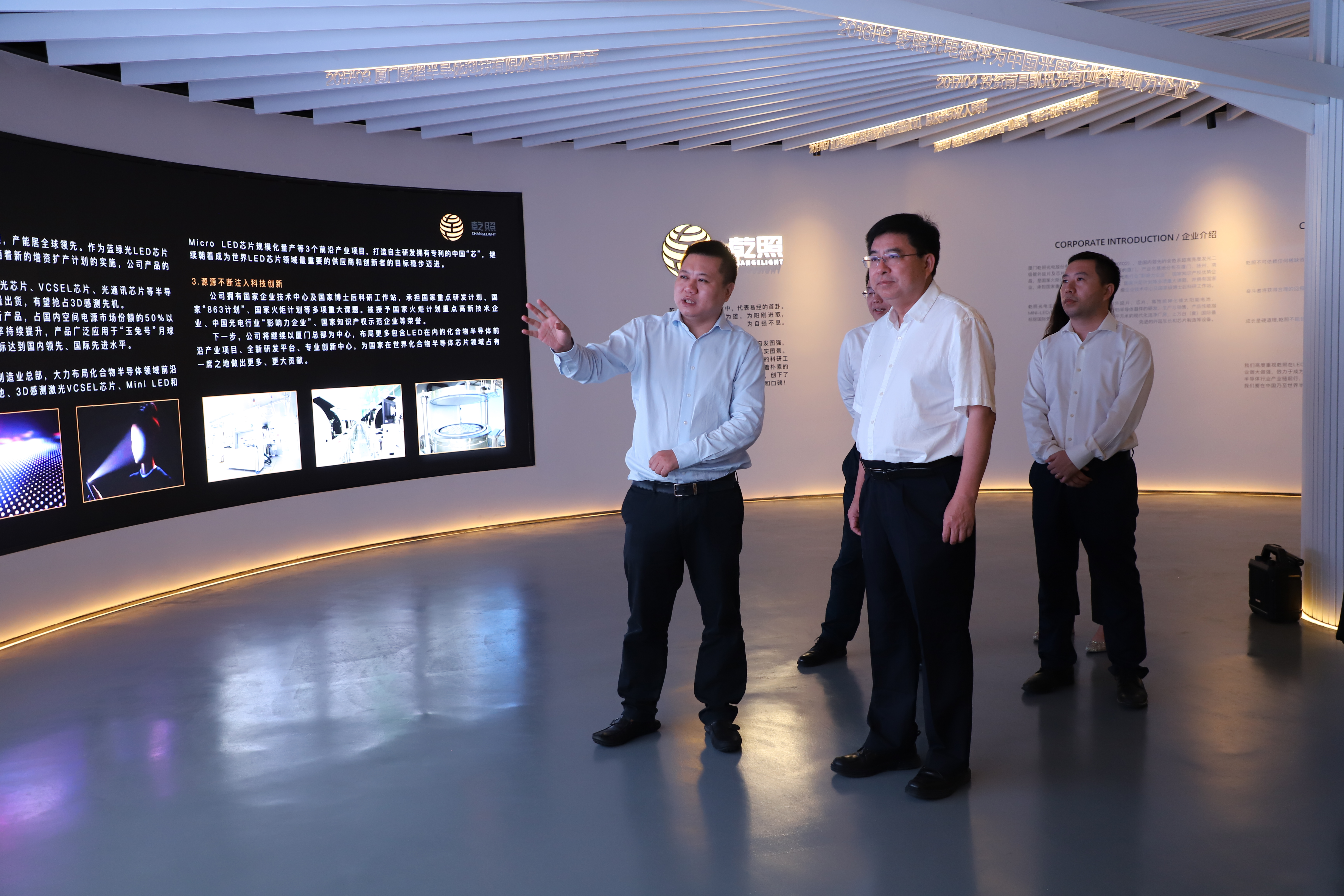 9月8日,南昌市委常委、市宣傳部部長、新建區(qū)委書記李松殿,新建區(qū)委常委、副區(qū)長、新建經(jīng)開區(qū)黨工委第一書記秦潤明等一行領(lǐng)導(dǎo)蒞臨乾照光電調(diào)研指導(dǎo)。乾照光電董事長金章育,副董事長兼總裁蔡海防參與接待。 在公司展廳,李部...