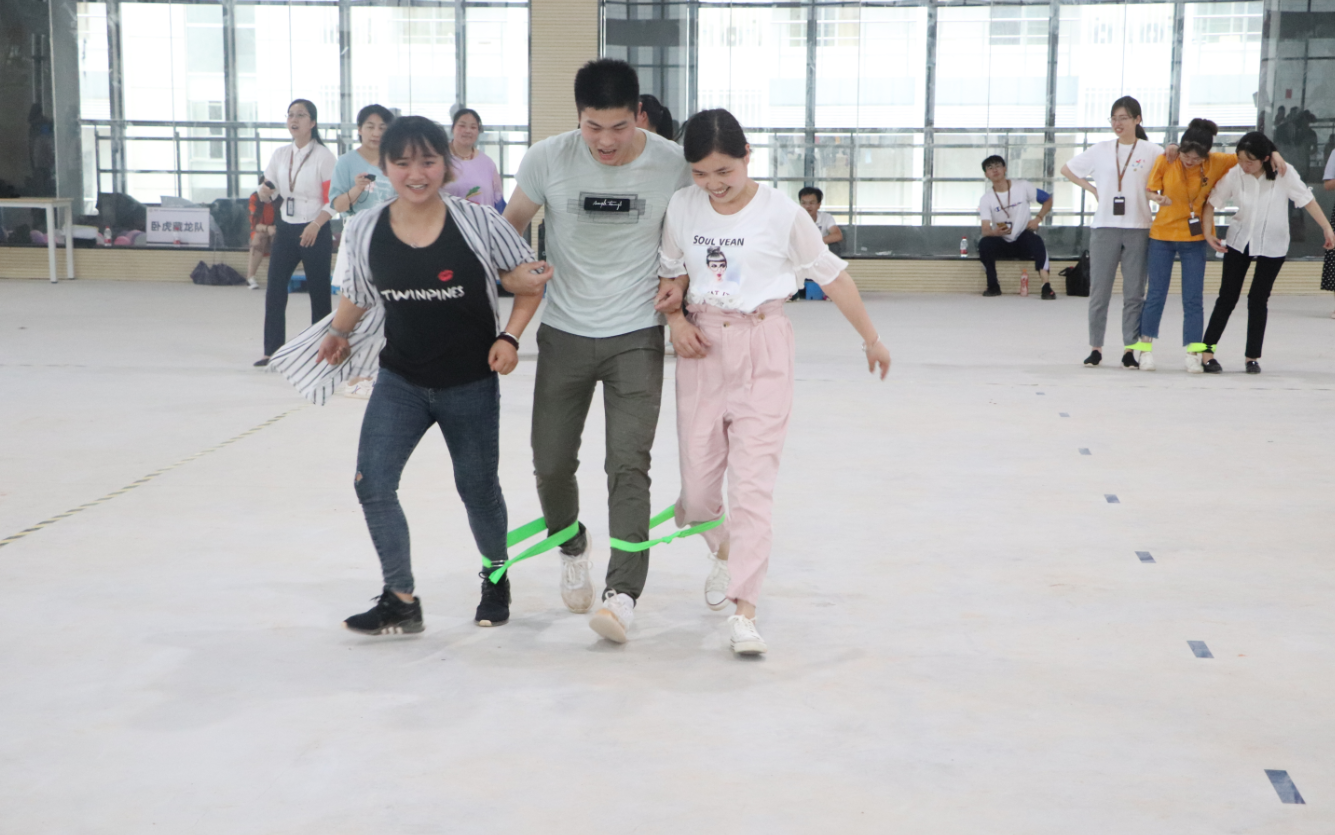 “兩人三足”項目考驗了隊員們的默契與合作,