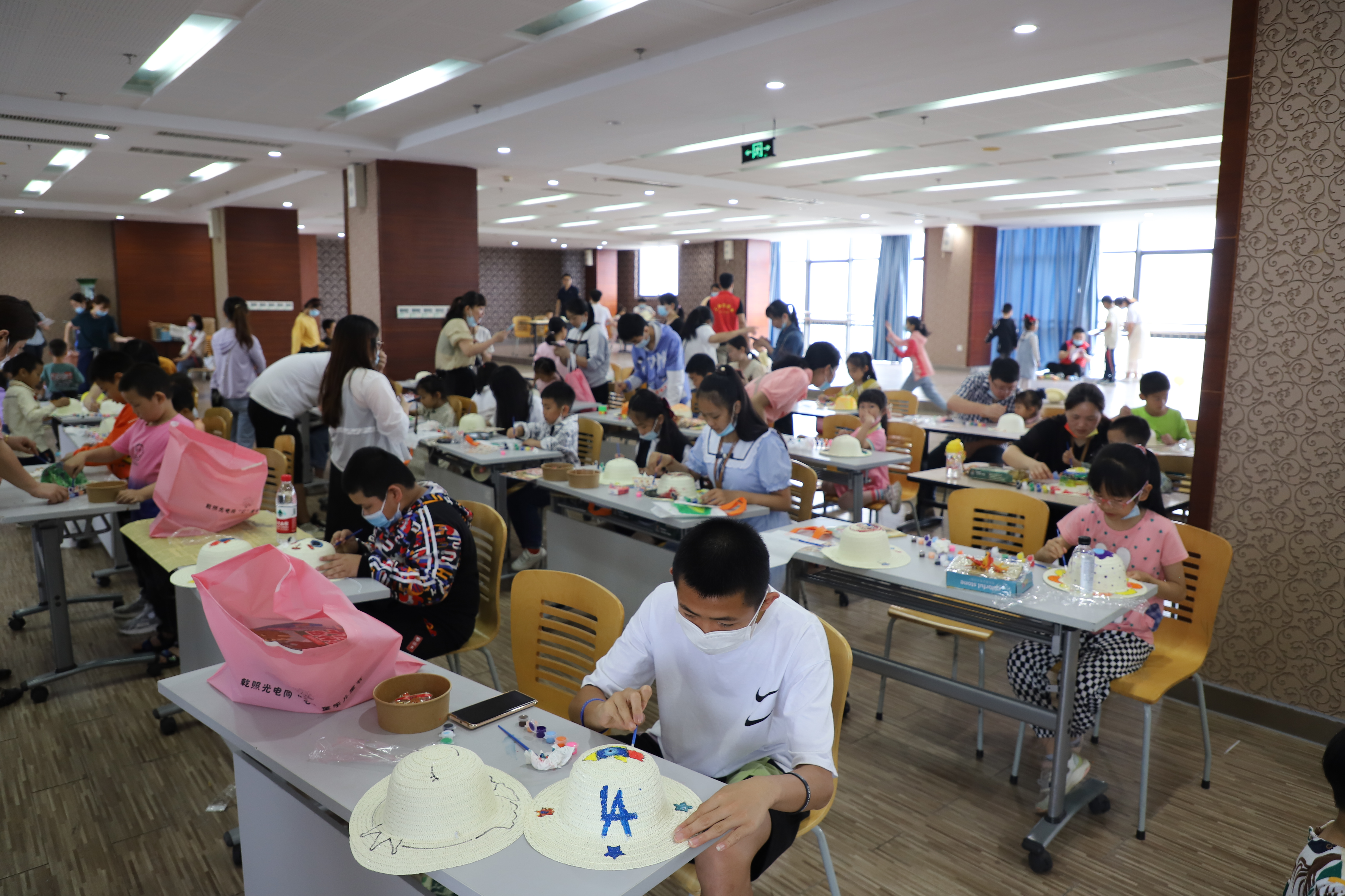 參觀過(guò)后,大家一起開(kāi)始DIY繪畫(huà)活動(dòng),小朋友們蘸著五彩顏料,揮舞畫(huà)筆,為“乾照”添色。明艷的色彩,歡樂(lè)的氛圍,工作人員也為小朋友們準(zhǔn)備了學(xué)習(xí)用品和書(shū)包,預(yù)祝小朋友們節(jié)日快樂(lè),學(xué)習(xí)進(jìn)步~