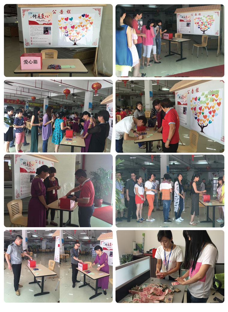 在得知侯劉寶華罹患胃癌的消息后,公司領(lǐng)導(dǎo)高度重視,第一時間前往醫(yī)院探望慰問,帶去了大家的問候和公司的慰問金。隨后,人資行政部向全公司發(fā)出募捐倡議書,開通三個愛心通道(現(xiàn)場募捐、銀行轉(zhuǎn)賬、微信轉(zhuǎn)賬)。所有乾照人,包括駐廠工作的合作廠商紛紛慷慨解囊,捐款相助,傳遞著愛與正能量。很多同事還在愛心墻上寫滿祝福語,希望劉寶華能早日康復(fù)。截至到8月底,據(jù)人資行政部的不完全統(tǒng)計,已累計向?qū)毴A提供愛心捐款50924元。還有很多員工把捐款通過銀行轉(zhuǎn)賬和微信支付打入劉寶華本人。